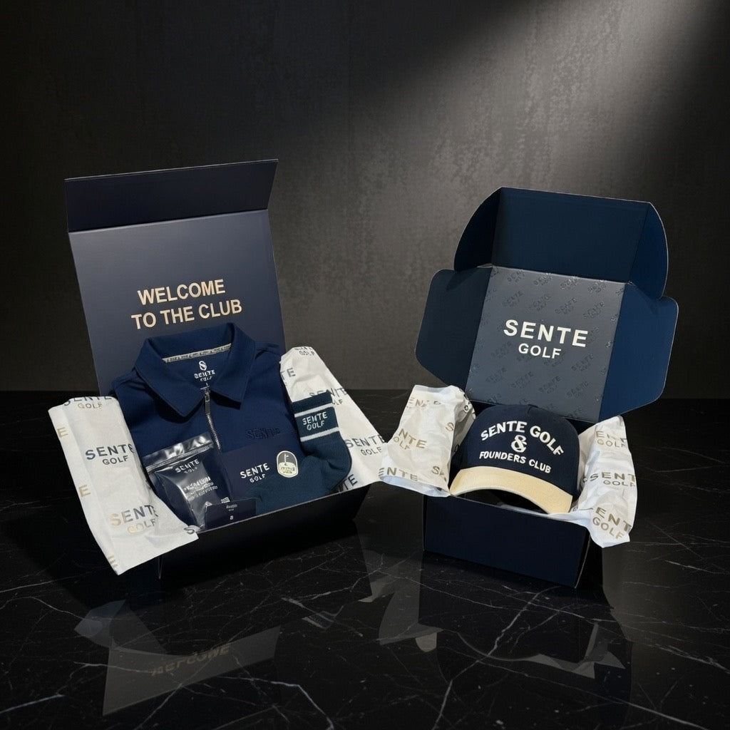This is your chance to get the full SENTE First Edition Pack - including the performance polo, premium cap, socks, tees, luxury magnetic box and 12-month Founders Club membership for £79.